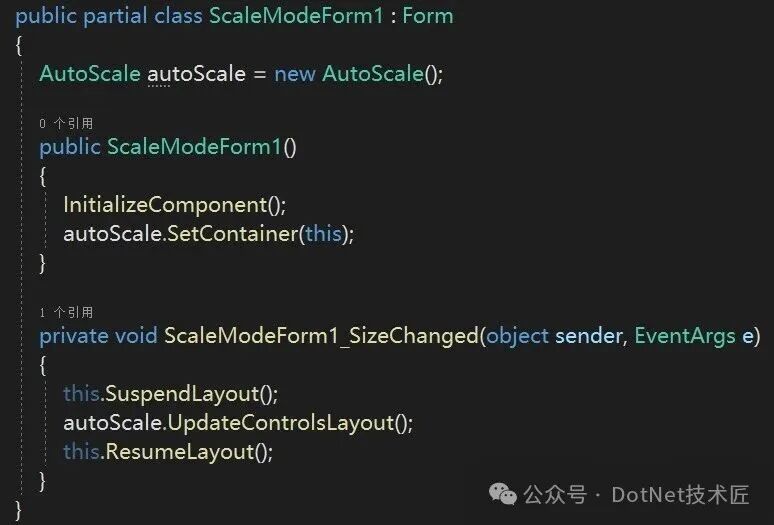 它通過監(jiān)聽容器(如窗體、Panel、GroupBox等)的大小變化事件,動態(tài)計算并調整其內部子控件的位置、大小和字體,從而實現(xiàn)布局的自適應縮放。無論是標準控件還是自定義控件,無論是靜態(tài)布局還是動態(tài)添加, 核心目標是通過模塊化設計解決三大痛點:多控件協(xié)同縮放、動態(tài)布局更新與字體智能適配。 項目功能1、支持對WinForm中絕大多數(shù)可視化控件進行縮放,包括Button、Label、TextBox、ComboBox等常用控件。 2、支持自定義控件的縮放,開發(fā)者可通過掛載 3、支持動態(tài)添加控件,并通過 4、提供"不縮放"設置,允許指定某些控件自身、內部子控件或字體不參與縮放,滿足特殊布局需求。 5、支持多種縮放模式,包括按容器比例縮放、保持控件自身比例并按水平或垂直方向縮放。 6、支持字體自適應,可自動調整控件字體大小,并支持"字體依賴"功能,即一個控件的字體變化可依賴于另一個控件。 項目使用在使用 AutoScaleHelper 實現(xiàn) WinForm 窗體或控件的自適應縮放時,掌握其基本使用方法是關鍵。 以下是簡潔明了的操作步驟和核心要點說明: 1、設置縮放模式首先,將窗體或目標容器的 2、配置 Anchor 屬性合理設置子控件的 例如: 若希望按鈕始終貼緊窗體右下角,應將其 若不依賴錨點,也可調用 3、編寫后臺代碼在窗體的 注意: 4、縮放模式AutoScaleHelper 提供三種縮放模式: 默認模式:按容器的寬高比例分別縮放子控件,適用于大多數(shù)場景。 保持比例 + 水平縮放:控件保持原始寬高比,僅隨容器寬度變化而縮放。 保持比例 + 垂直縮放:控件保持原始寬高比,僅隨容器高度變化而縮放。 5、字體自適應啟用 6、排除特定控件可通過以下方式控制某些控件不參與縮放: 自身不縮放:保持位置、大小、字體不變。 內部控件不縮放:容器本身縮放,但其子控件不縮放。 字體不縮放:僅字體保持原大小。 7、字體依賴支持設置一個控件的字體跟隨另一個控件變化。例如,讓 TextBox 的字體隨 Label 縮放:
