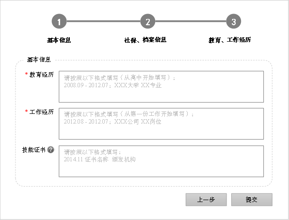 圖7 x 拆分后的頁面1:基本信息錄入 在基本信息錄入界面,我們還將聯(lián)系方式拆分出來,和基本信息一起,各自使用虛線矩形框分組,降低用戶的認(rèn)知、理解難度,讓頁面看起來更有邏輯性、簡潔。 對于必填字段,加了星號提示;對于需要解釋的字段,加了小問號,用戶指向問號后會(huì)對字段做出解釋說明。 對于地址信息,可以讓用戶輸入完整地址,自動(dòng)識別省、市、區(qū),避免用戶手工選擇。 用戶點(diǎn)擊下一步以后,來到了步驟二的頁面,如圖7-x。 參保類型、保險(xiǎn)繳費(fèi)年限這些用戶有疑問的字段,都增加了小提示做解釋。同時(shí)界面中采用了大量CRAP原則的對齊思路,大家可以仔細(xì)檢查,看看哪些控件做了對齊處理。是不是看起來更清爽一些? 圖7 x 拆分后的頁面2:社保檔案信息錄入 最后來到了步驟三,如圖7-x。 在教育經(jīng)歷、工作經(jīng)歷的文本框中,用淡灰色文字做了格式要求的示意,這并非強(qiáng)制要求,但通過提示,希望用戶盡量能按照清晰地邏輯結(jié)構(gòu)描述相關(guān)信息,否則用戶填寫的方式,絕對五花八門。 圖7 x 拆分后的頁面3:教育工作經(jīng)歷錄入 經(jīng)過重新設(shè)計(jì),新的表單錄入界面是不是清晰了很多?當(dāng)然,這也需要更多精力的投入,包括設(shè)計(jì)的精力,研發(fā)實(shí)現(xiàn)的精力。 用戶體驗(yàn)優(yōu)化,本來就是需要付出額外成本的工作。 閱讀原文:https://mp.weixin.qq.com/s/2C6gFO17A5vxAGaExVtqPg 該文章在 2025/9/12 12:34:45 編輯過 |