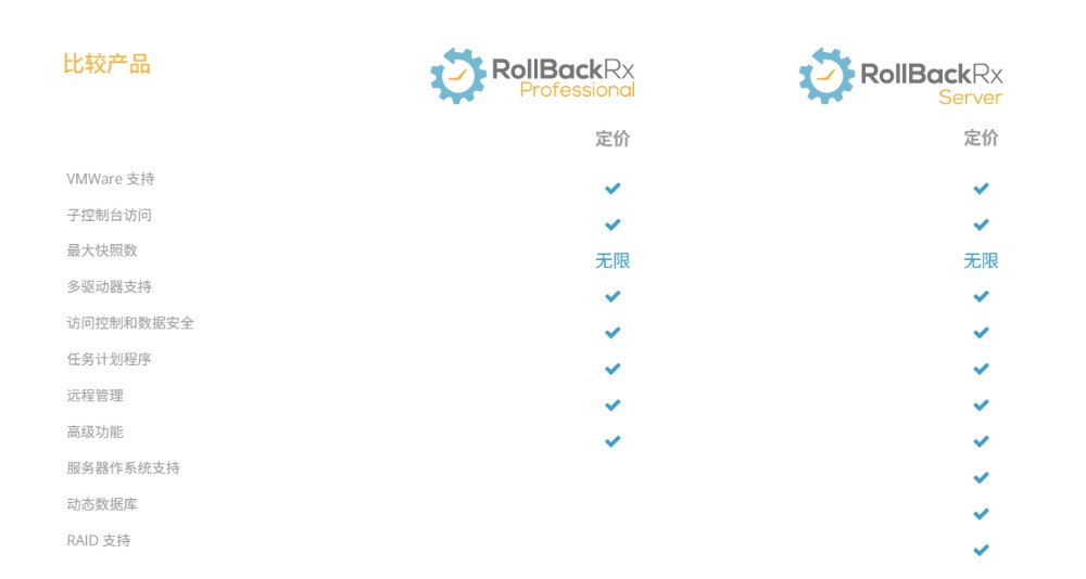 RollBack Rx Professional / RollBack Rx Server Edition 功能比較: ?
