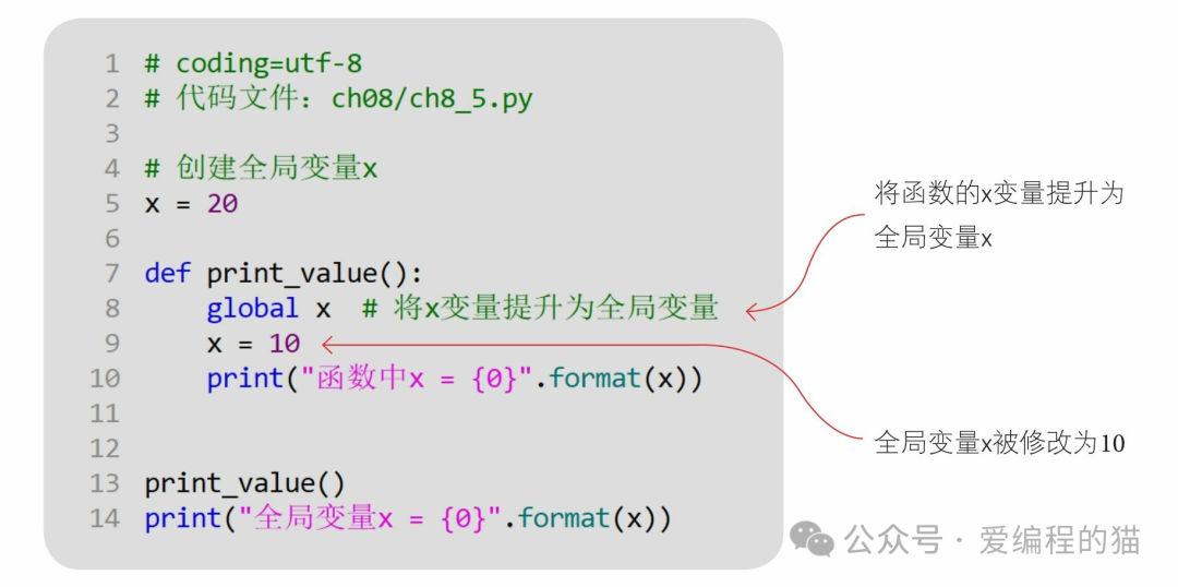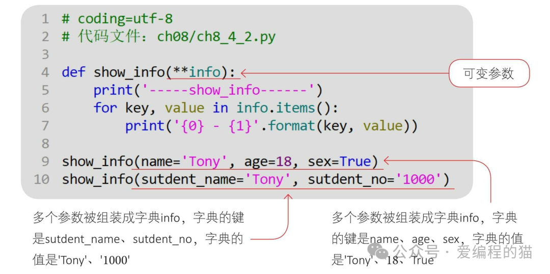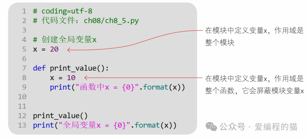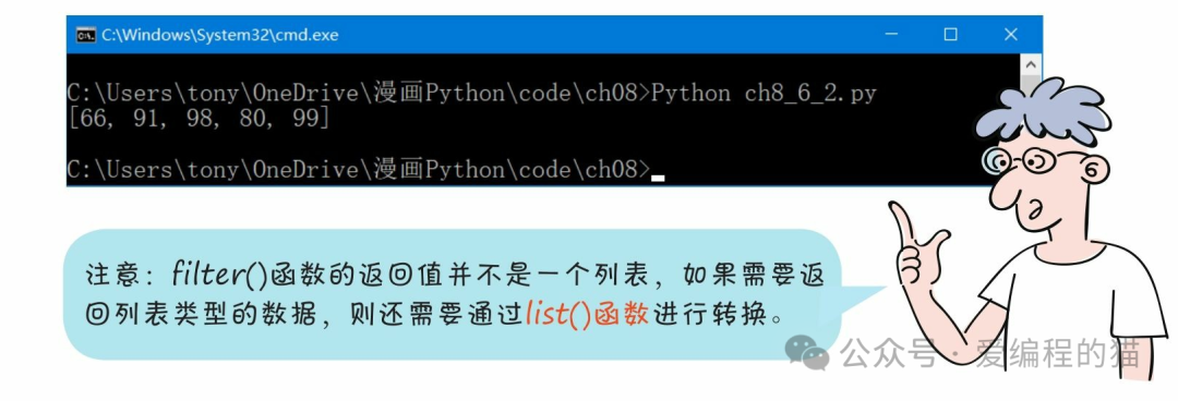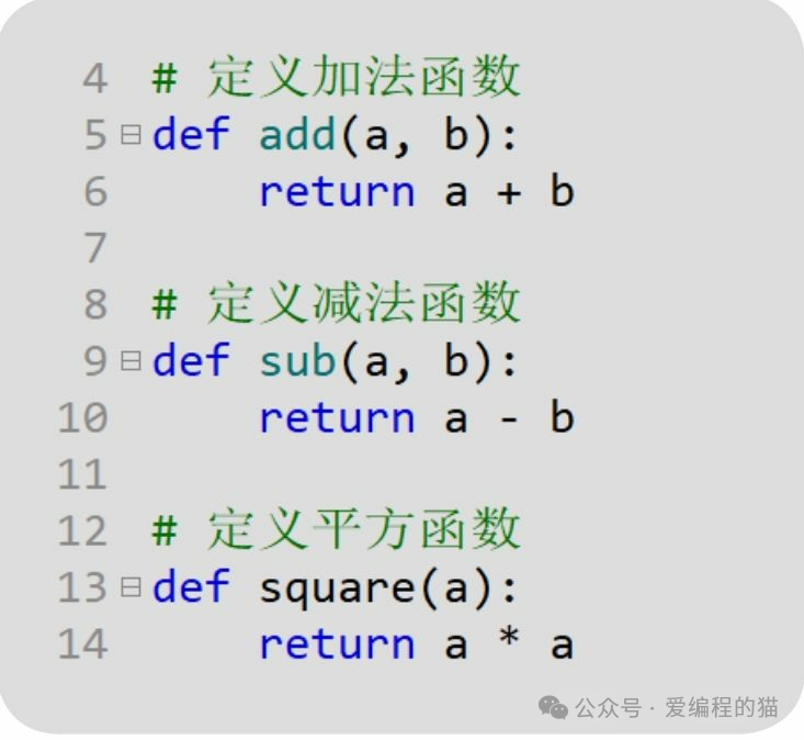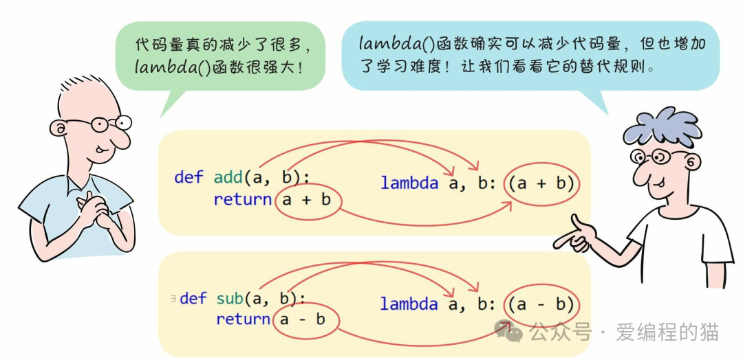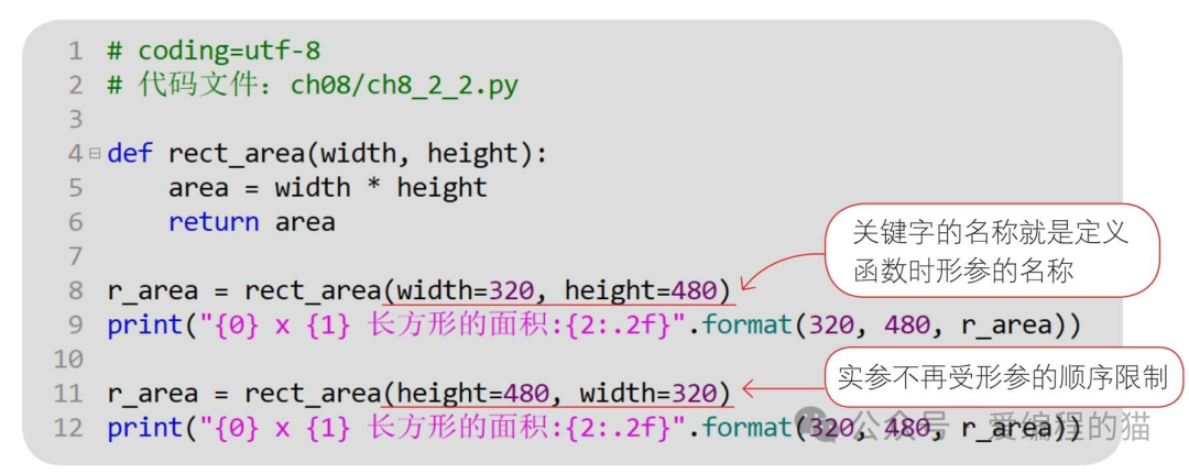 導讀 簡要介紹:本文改編知名作家-關東升,一個在IT領域摸爬滾打20多年的老程序員、軟件架構師、高級培訓 講師、IT作家。 ? ![]() ![]() ![]() ![]() ![]() 在定義好函數(shù)后,就可以調用函數(shù)了,很簡單! 8.2.1 使用位置參數(shù)調用函數(shù) 在調用函數(shù)時傳遞的實參與定義函數(shù)時的形參順序一致,這是調用 函數(shù)的基本形式。 ![]() ![]() 在調用函數(shù)時可以采用“關鍵字=實參”的形式,其中,關鍵字的名稱就是定義函數(shù)時形參的名稱。 ![]() ![]() ![]() ![]() ![]() 8.4.1 基于元組的可變參數(shù)(*可變參數(shù)) *可變參數(shù)在函數(shù)中被組裝成一個元組。 示例代碼如下: ![]() 8.4.2 基于字典的可變參數(shù)(**可變參數(shù)) **可變參數(shù)在函數(shù)中被組裝成一個字典。 示例代碼如下: ![]() ![]() ![]() ![]() ![]() ![]() ![]() ![]() ![]() Python中的任意一個函數(shù)都有數(shù)據(jù)類型,這種數(shù)據(jù)類型是function, 被稱為函數(shù)類型。 8.6.1 理解函數(shù)類型 函數(shù)類型的數(shù)據(jù)與其他類型的數(shù)據(jù)是一樣的,任意類型的數(shù)據(jù)都可 以作為函數(shù)返回值使用,還可以作為函數(shù)參數(shù)使用。因此,一個函數(shù)可 以作為另一個函數(shù)返回值使用,也可以作為另一個函數(shù)參數(shù)使用。 ![]() ![]() ![]() ![]() ![]() add()和sub()函數(shù)有兩個數(shù)字參數(shù),具有相同的函數(shù)類型。sq uare()函數(shù)只有一個數(shù)字參數(shù),所以square()與add()、sub()函 數(shù)的類型不同。 8.6.2 過濾函數(shù)filter() 在Python中定義了一些用于數(shù)據(jù)處理的函數(shù),如filter()和map( )等。我們先介紹filter()函數(shù)。 filter()函數(shù)用于對容器中的元素進行過濾處理。 ![]() ![]() 參數(shù)function是一個提供過濾條件的函數(shù),返回布爾值。 參數(shù)iterable是容器類型的數(shù)據(jù)。 ![]() ![]() ![]() ![]() 8.6.3 映射函數(shù)map() map()函數(shù)用于對容器中的元素進行映射(或變換)。 例如:我 想將列表中的所有元素都乘以2,返回新的列表。 ![]() ![]() 參數(shù)function是一個提供變換規(guī)則的函數(shù),返回變換之后的元素。 參數(shù)iterable是容器類型的數(shù)據(jù)。 示例代碼如下: ![]() ![]() ![]() 我們之前學習的函數(shù)都是有名稱的函數(shù),例如在8.1節(jié)定義的rect_ar ea()函數(shù),rect_area就是其函數(shù)名。我們也可以定義匿名函數(shù),匿名 函數(shù)就是沒有名稱的函數(shù)。 在Python中使用lambda關鍵字定義匿名函數(shù)。lambda關鍵字定義的 函數(shù)也被稱為lambda()函數(shù),定義lambda()函數(shù)的語法如下。 “參數(shù)列表”與函數(shù)的參數(shù)列表是一樣的,但不需要用小括號括起來。 ![]() ![]() lambda()函數(shù)與有名稱的函數(shù)一樣,都是函數(shù)類型,所以8.6.1節(jié) 的add()和sub()函數(shù)可以被lambda()函數(shù)替代。修改8.6.1節(jié)的代 碼示例如下: ![]() ![]() ![]() ![]() ![]() 閱讀原文:https://mp.weixin.qq.com/s/COv9z89qukquBocw7IcAvA 該文章在 2025/9/17 12:48:37 編輯過 |