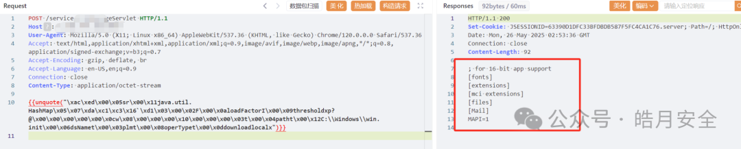 源代碼如下 ![]() 獲取HTTP數(shù)據(jù)包中的輸入流,存入輸出流in2中,然后調(diào)用readObject()方法對輸出流in2進(jìn)行反序列化,轉(zhuǎn)換對象為一個(gè)hashmap數(shù)組headInfo,從headInfo中獲取dsName和operType,當(dāng)operType不為upload時(shí),調(diào)用doDownLoadFile(headInfo, response); 跟進(jìn)doDownLoadFile方法 ![]() 從headInfo中獲取參數(shù)path,隨后初始化文件系統(tǒng)的操作類,調(diào)用downLoadFile方法 跟進(jìn)downLoadFile方法 ![]() 根據(jù)dnName進(jìn)行FileSpace初始化,雖有調(diào)用outNodeFileData方法 ![]() 跟進(jìn)方法outNCFileData, ![]() 首先調(diào)用validatePathString對傳入的路徑nodepath進(jìn)行判斷,沒有校驗(yàn)絕對路徑類型和路徑穿越字符 ![]() 隨后直接調(diào)用ps = getNativeConn(con).prepareStatement("select contentdata from sm_pub_filesystem where path = ?"); 實(shí)現(xiàn)從數(shù)據(jù)庫中映射路徑獲取讀取的文件內(nèi)容,并調(diào)用new OutNCFileDataProcessor(out).handleResultSet(rs); 將讀取內(nèi)容寫入響應(yīng)對象,整個(gè)過程中沒有對傳入的反序列化數(shù)據(jù)校驗(yàn),且沒有校驗(yàn)獲取的path是否可以路徑穿越以及是否通過絕對路徑讀取敏感文件內(nèi)容 ![]() 閱讀原文:https://mp.weixin.qq.com/s/4YlRUTLAD5p-fVt4_DaMgA 該文章在 2025/9/20 9:42:25 編輯過 |