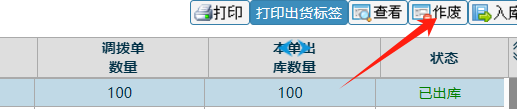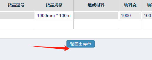 ![]() ![]() 點擊進入 如下圖; 點擊一條信息后,背景變色后,點擊作廢按鈕 如下圖: 點擊駁回出庫單按鈕 如下圖:
