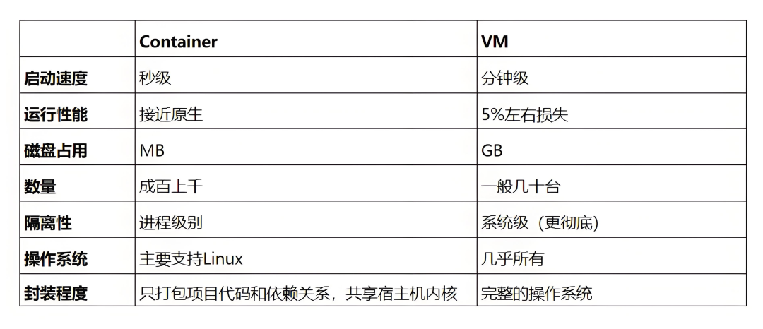 → 容器資源占用僅為 MB 級(jí),虛擬機(jī)需 GB 級(jí),單機(jī)容器部署密度可達(dá)虛擬機(jī)的 10 倍以上。 - 容器直接調(diào)用宿主機(jī)內(nèi)核,I/O 與 CPU 性能接近原生應(yīng)用(損耗 <2%);