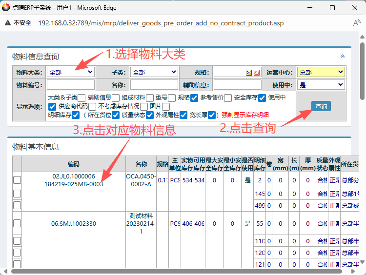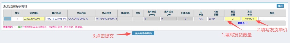 ![]() ![]() 1.進(jìn)入ERP系統(tǒng)之后,在左側(cè)的功能菜單里找到“BOE定制”,點(diǎn)開“成品返退”,點(diǎn)擊“新增返退品送貨單”。 2.進(jìn)入界面后,按圖操作:點(diǎn)擊選擇送貨類型,然后選擇對(duì)應(yīng)客戶。 3.接著到下方點(diǎn)擊“物料編碼”,會(huì)彈出物料信息窗口。 在彈出的物料信息窗口內(nèi),選擇物料大類,點(diǎn)擊查詢。然后點(diǎn)擊對(duì)應(yīng)物料信息。 4.選好物料后,填寫發(fā)貨數(shù)量以及發(fā)貨單價(jià),然后點(diǎn)擊提交。 5.提交后,回到左側(cè)的功能菜單找到“返退品送貨單管理”。 6.進(jìn)入界面后,按圖操作:選擇收貨單位、出庫和合同類型以及子類,點(diǎn)擊查詢。然后點(diǎn)擊對(duì)應(yīng)物料信息,再點(diǎn)擊發(fā)貨。 在發(fā)貨界面內(nèi),按圖操作:填寫實(shí)際發(fā)貨數(shù)量以及發(fā)貨倉庫(與上面一致),根據(jù)情況選擇“確認(rèn)送貨數(shù)量”或“送貨并回單”。