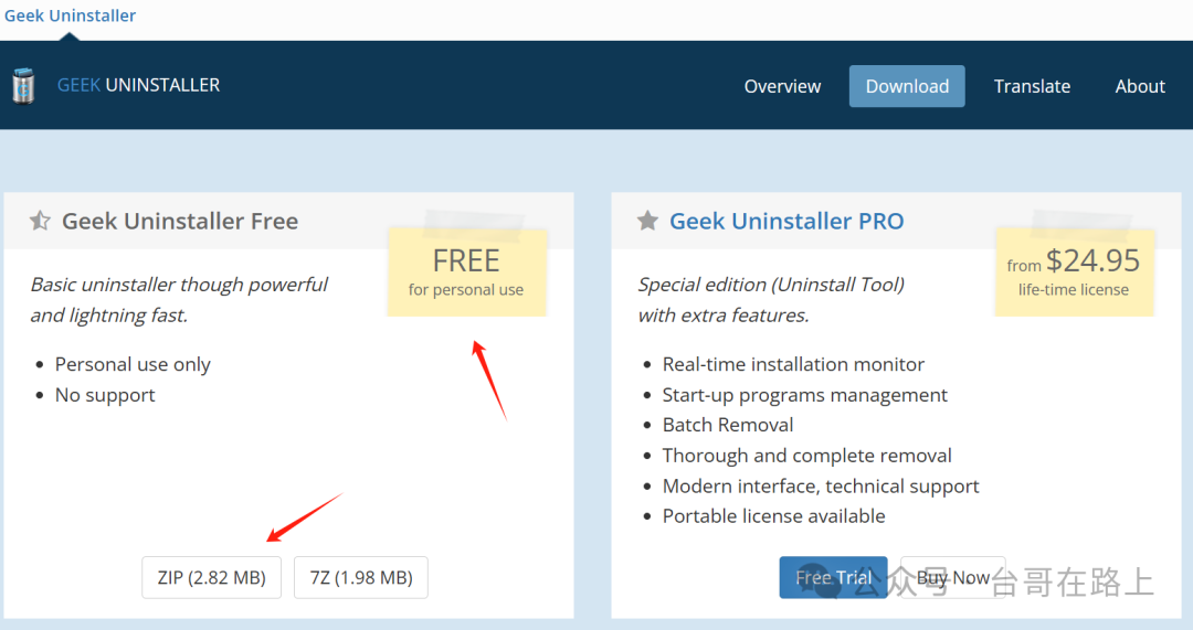 它的安裝包只有3M,解壓后也只有6.7M,它的整個程序,只有一個文件。 就是下面這個: ![]() 看起來,它這么簡單。 但是,它的功能很強(qiáng)大,很好用。 來看看它的界面: ![]() 它會列出當(dāng)前電腦里的所有軟件,只需要右鍵某個軟件,彈出框里選擇卸載,就可以對其進(jìn)行卸載了。 有時候我們安裝的一些軟件,從系統(tǒng)里怎么都找不到卸載指令,那么就可以用這款軟件來處理了。 除此之外,微軟系統(tǒng)自帶的一些軟件,它也可以卸載。 只需要在查看菜單里,切換一下: ![]() 程序界面里,就會列出通過微軟商店安裝的程序了。 軟件的所有功能,都非常簡單,一目了然,一看就會。 好了,不賣關(guān)子了,這款軟件的名稱叫什么呢? 大家從截圖里也看出來了,它就是:Geek Uninstaller 大家可以自行搜索,到它的官網(wǎng)下載:https://geekuninstaller.com/? 官網(wǎng)是下面這樣的,下載左邊的免費(fèi)版即可。 該文章在 2025/9/20 15:50:18 編輯過 |