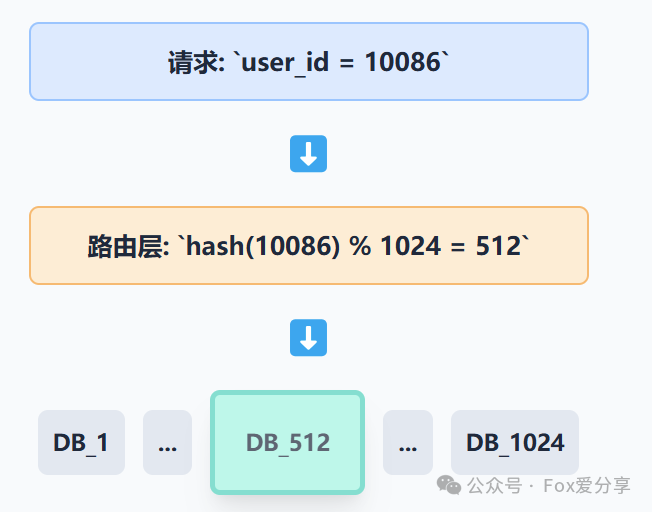 進(jìn)行哈希計算,再對分片總數(shù)取模,決定該請求應(yīng)該路由到哪個數(shù)據(jù)庫。