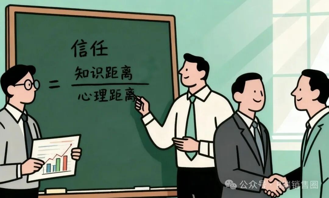 所以,做銷售我們最該先解決的,不是“怎么把產(chǎn)品講清楚”,而是怎么讓客戶敢于把心交給你。 二、信任公式:知識距離 ÷ 心理距離有人曾提出一個公式,我特別認同: 信任 = 知識距離 ÷ 心理距離 心理距離越小,知識距離越大,信任感越強。