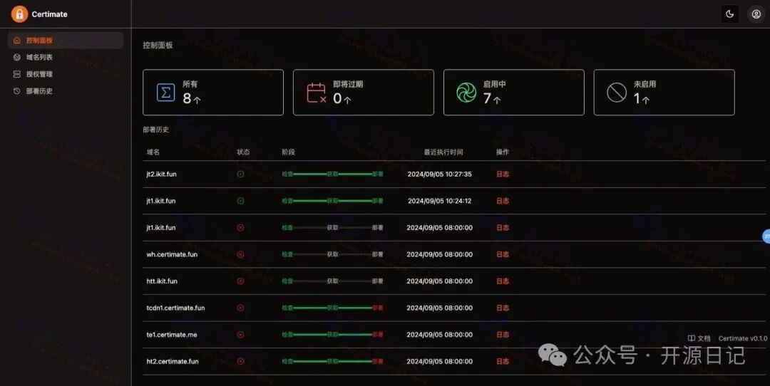 「Certimate」是一個 開源的 SSL 證書管理工具,它可以幫助你自動化處理從證書申請到續(xù)期的所有流程,尤其適合那些同時維護多個域名的個人開發(fā)者或者中小型企業(yè)運維工程師。整個設(shè)置通過簡單的配置就能完成,再也不用擔心網(wǎng)站證書失效的問題!