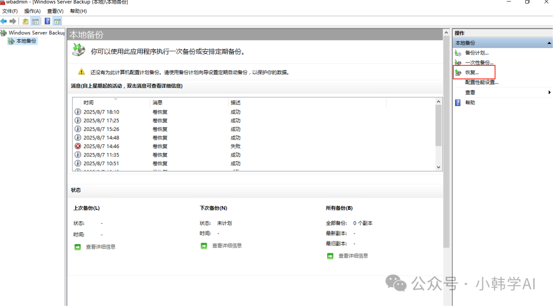 - 本篇文章主要介紹使用windows server backup圖形化工具恢復(fù)