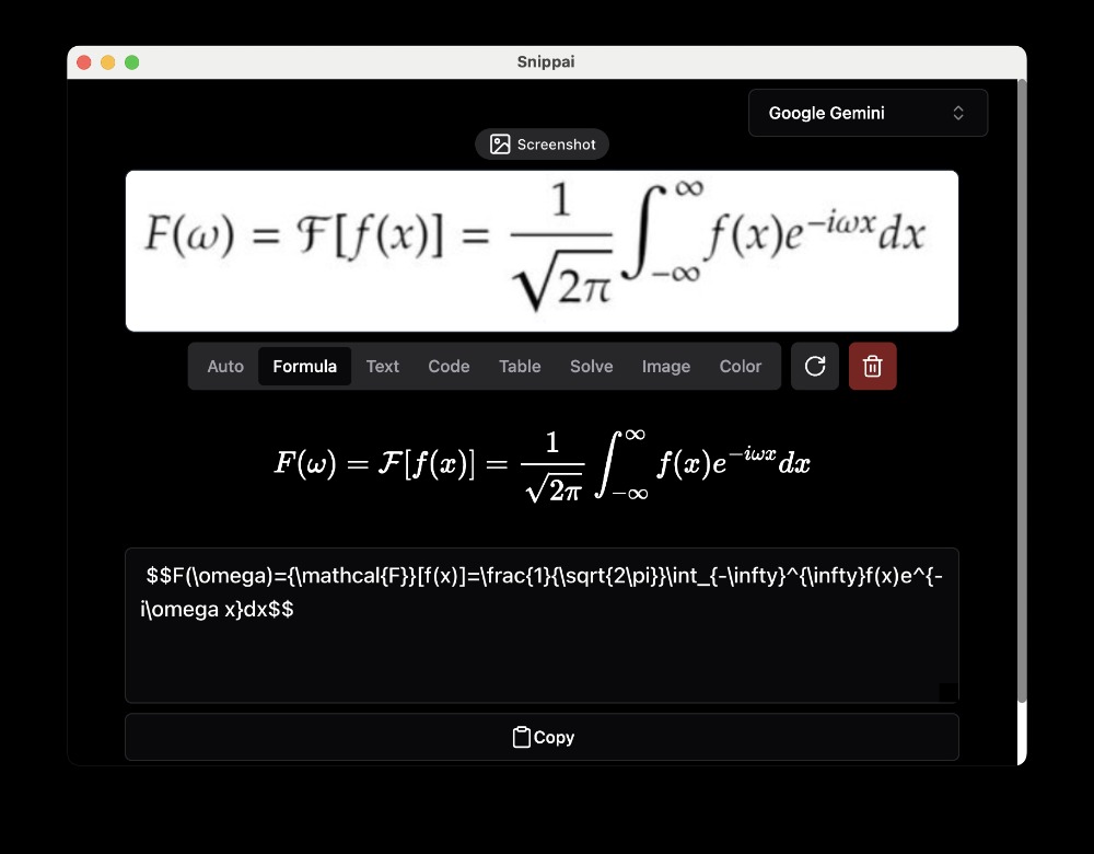 [點晴永久免費OA]Snippai:一款功能強大的智能截圖工具,不僅能夠識別圖像中的公式和文本,還能表格轉(zhuǎn)換、代碼理解和語言翻譯等