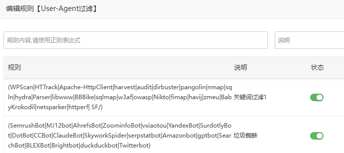 例如規(guī)則內(nèi)容可填寫(xiě): 保存后,這些爬蟲(chóng)再訪問(wèn)你的網(wǎng)站,就會(huì)被直接攔截,不再消耗CPU和帶寬。 只留真正有用的蜘蛛 建議只保留以下主流搜索引擎的爬蟲(chóng):