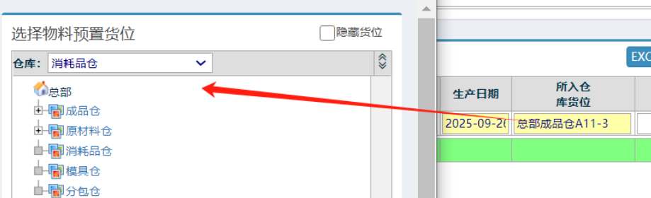 點(diǎn)晴模切ERP-彈出提示:物料入庫(kù)貨位innerid禁止=0