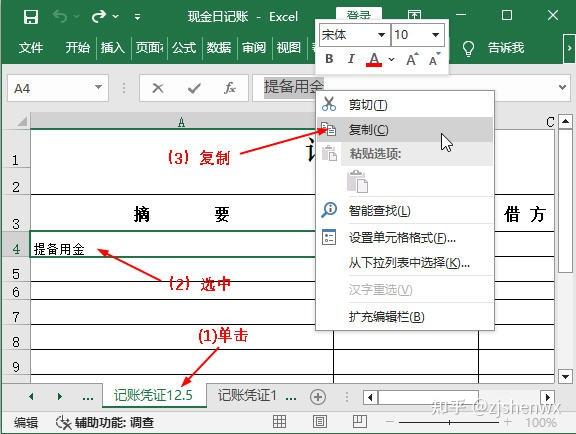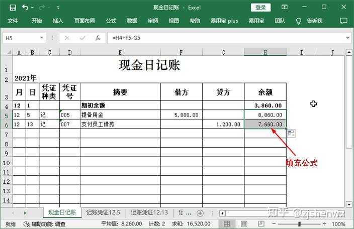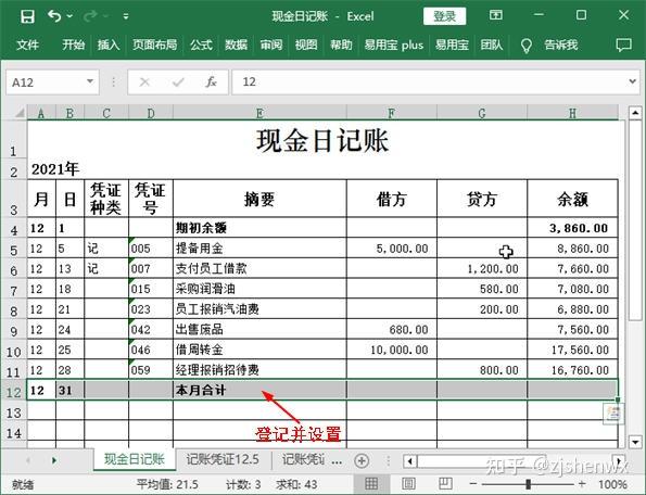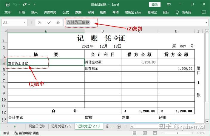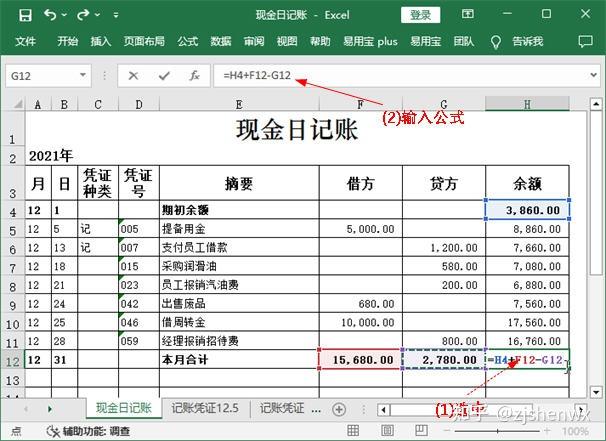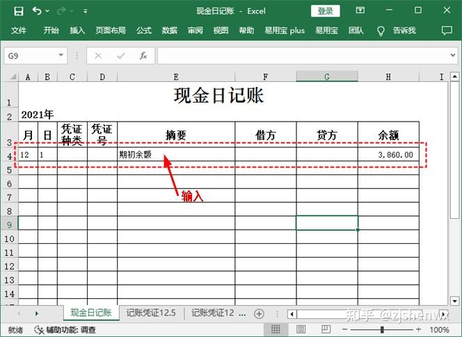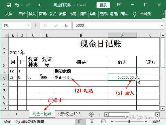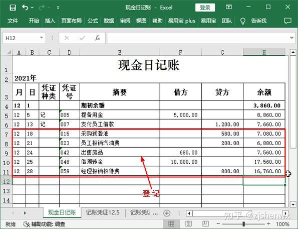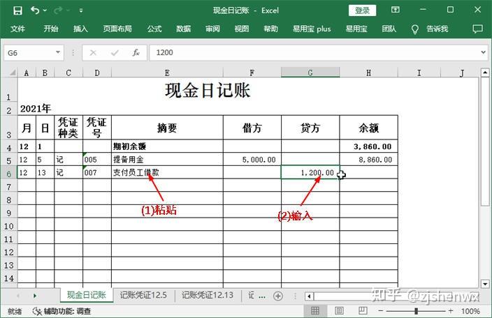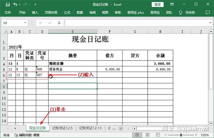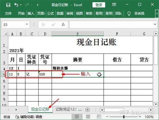 ![]() ![]() 現(xiàn)金日記賬Excel模板的編制? 根據(jù)審核后的原始憑證編制記賬憑證后,同樣需要對(duì)記賬憑證進(jìn)行審核,只有通過(guò)審核后才能作為登記賬簿的依據(jù)。現(xiàn)金日記賬是企業(yè)必須設(shè)置的一類會(huì)計(jì)賬簿,現(xiàn)金日記賬由出納人員根據(jù)同現(xiàn)金收付有關(guān)的記賬憑證,按時(shí)間順序逐日、逐筆進(jìn)行登記,并根據(jù)“上日余額+本日收入一本日支出=本日余額”以及“期初余額+本期增加一本期減少=期末余額”的公式,逐日結(jié)出現(xiàn)金余額,然后將該余額與庫(kù)存現(xiàn)金實(shí)存數(shù)核對(duì),以檢查每日現(xiàn)金收付是否有誤。 一、 現(xiàn)金日記賬對(duì)現(xiàn)金收支情況的反映企業(yè)一般以每一個(gè)月作為一個(gè)最小的會(huì)計(jì)期間,按月登記賬簿?,F(xiàn)金日記賬即是通過(guò)將所有涉及現(xiàn)金收支的記賬憑證中的數(shù)據(jù)登記到現(xiàn)金日記賬中,通過(guò)借方、貸方和余額等欄目,清晰表現(xiàn)出每一筆與現(xiàn)金相關(guān)的經(jīng)濟(jì)業(yè)務(wù)的真實(shí)情況。現(xiàn)金日記賬賬頁(yè)的一般格式如下圖所示。 ![]() ●年月日:每筆現(xiàn)金業(yè)務(wù)的發(fā)生日期,即所依據(jù)的記賬憑證中的日期。 ●憑證種類:如果是通用記賬憑證,一般就錄入“記”字,如果是專用記賬憑證,則根據(jù)情況錄入“收”“付”,或“現(xiàn)收”“現(xiàn)付”等字樣。 ●憑證號(hào):所依據(jù)的記賬憑證中的憑證號(hào)。 ●摘要:所依據(jù)的記賬憑證中的摘要。 ●借方、貸方:如果記賬憑證中庫(kù)存現(xiàn)金的發(fā)生額在借方,那么現(xiàn)金日記賬上也登記到借方;如果記賬憑證中庫(kù)存現(xiàn)金的發(fā)生額在貸方,那么現(xiàn)金日記賬上也登記到貸方。 ●余額:發(fā)生每筆現(xiàn)金業(yè)務(wù)后,通過(guò)計(jì)算得到的現(xiàn)金余額。其計(jì)算公式為:本日余額=上日余額+本日借方金額-本日貸方發(fā)生額 ●期初余額:即上一個(gè)會(huì)計(jì)期間結(jié)束后剩余的現(xiàn)金余額。 二、 登記現(xiàn)金日記賬并計(jì)算余額通過(guò)記賬憑證是很容易完成現(xiàn)金日記賬的登記工作的,具體做法為:找到涉及“庫(kù)存現(xiàn)金”科目的記賬憑證,將其中需要的數(shù)據(jù)抄錄到賬簿中,然后計(jì)算出余額即可。但對(duì)于Excel而言,如果有記賬憑證表格,那么這些數(shù)據(jù)都能復(fù)制或直接引用,余額也可以通過(guò)設(shè)計(jì)公式來(lái)自動(dòng)計(jì)算,這樣就大大提高了工作效率。假設(shè)現(xiàn)金日記賬的期初余額為3860元,該月發(fā)生了7 筆與現(xiàn)金收支相關(guān)的經(jīng)濟(jì)業(yè)務(wù),下面就利于Excel來(lái)完成現(xiàn)金日記賬的登記工作。 ![]() 1、輸入年份和期初余額使用此模板登記現(xiàn)金日記賬之前,需要手動(dòng)輸入該賬簿所屬會(huì)計(jì)期間的年份以及“庫(kù)存現(xiàn)金”科目期初余額的數(shù)據(jù)。 【第1步】輸入賬簿年份 打開(kāi)如下圖示的“現(xiàn)金日記賬”模板文件,選中A2單元格,在編輯欄中將“0000”修改為“2021”。 ![]() 【第2步】輸入期初余額 在第4行的單元格的相應(yīng)位置輸入期初余額欄目的有關(guān)數(shù)據(jù),即表示12月1日時(shí),“庫(kù)存現(xiàn)金”科目的期初余額為3860元。 ![]() 【第3步】加粗顯示期初額 為了使期初余額的相關(guān)數(shù)據(jù)更加突出,這里可以選中A4:H4單元格區(qū)域,按【Ctrl+B】組合鍵將所選對(duì)象加粗顯示。 ![]() 2、利用記賬憑證登記現(xiàn)金日記賬通過(guò)輸入和復(fù)制記賬憑證中的相關(guān)數(shù)據(jù),可以很快完成現(xiàn)金日記賬的登記工作。對(duì)于現(xiàn)金日記賬余額的輸入,則可手動(dòng)設(shè)計(jì)公式來(lái)實(shí)現(xiàn)自動(dòng)計(jì)算。 【第1步】查看記賬憑證數(shù)據(jù) 單擊“記賬憑證12.5”工作表標(biāo)簽,查看其中有關(guān)記賬憑證的日期、編號(hào)等相關(guān)數(shù)據(jù)。 ![]() (注,如何查看記賬憑證的類型:記賬憑證的名稱就可以反映它的類型。比如名稱為“記賬憑證”,說(shuō)明它是通用記賬憑證,類型可以用“記”表示;如果名稱為“收款憑證”,則類型可以用“收”表示;如果名稱為“現(xiàn)金收款憑證”,則類型可以用“現(xiàn)收”表示,以此類推。) 【第2步】登記現(xiàn)金日記賬 (1)切換到“現(xiàn)金日記賬”工作表;(2)在第5行中依次輸入所查看的記賬憑證中的日期、類型和編號(hào)等數(shù)據(jù)。輸入憑證號(hào)之前,應(yīng)首先將單元格的類型更改為“文本”型數(shù)據(jù)。 ![]() (注:如何取消單元格左上角的綠色標(biāo)識(shí)?將單元格設(shè)置為文本型數(shù)據(jù),然后在其中輸入數(shù)字時(shí),Excel會(huì)在單元格左上角顯示綠色三角標(biāo)識(shí),提醒用戶這是以文本的形式存放的數(shù)字。如果確認(rèn)無(wú)誤,且不需要該標(biāo)識(shí),可選中單元格,單擊左側(cè)出現(xiàn)的按鈕,在彈出的下拉列表中選擇“忽略錯(cuò)誤”選項(xiàng)即可。) 【第3步】復(fù)制記賬憑證摘要 (1)重新切換到“記賬憑證12.5”工作表;(2)選中A4單元格;(3)在編輯欄中復(fù)制摘要內(nèi)容,同時(shí)記住庫(kù)存現(xiàn)金的金額方向和金額數(shù)據(jù)。 ![]() 