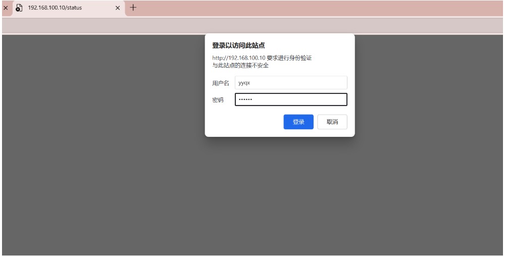 瀏覽器測試訪問:(用戶名:yyqx,密碼:123456)