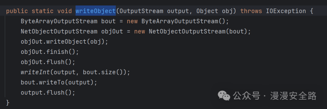 進(jìn)行反序列化。這里我們可以直接套用它的序列化方法來進(jìn)行序列化數(shù)據(jù)的生成nc.bs.framework.comn.NetObjectOutputStream#writeObject