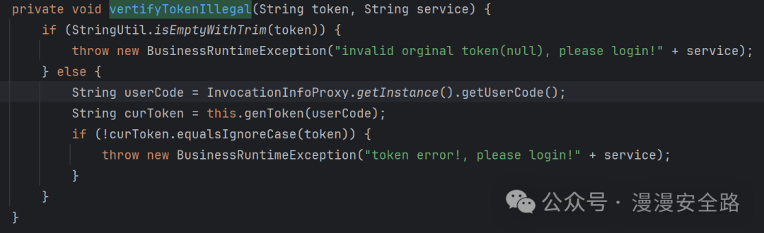 在可信列表里則直接不進(jìn)行token驗(yàn)證,然后看vertifyTokenIllegal