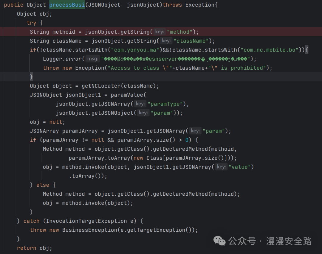 我這個代碼是修復(fù)了這個漏洞以后的加了包名限制。這里其實(shí)和我們上面反射調(diào)用方法是一樣的只不過這里是json