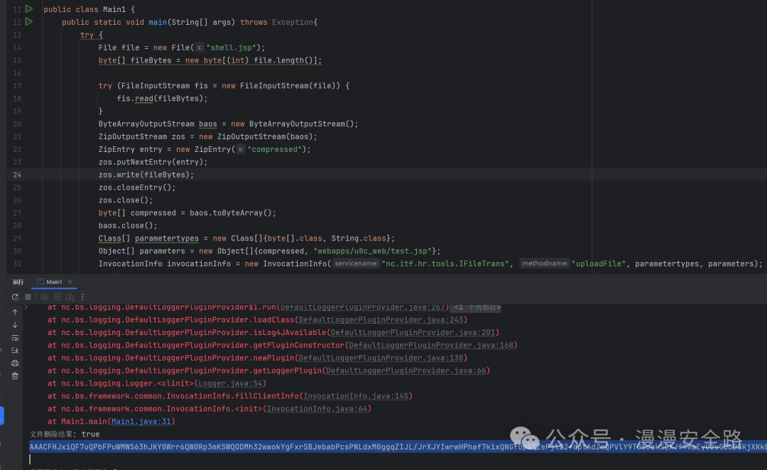 格式上面是反序列化。所以我們看下"method":"uploadFile","className":"nc.itf.hr.tools.IFileTrans"