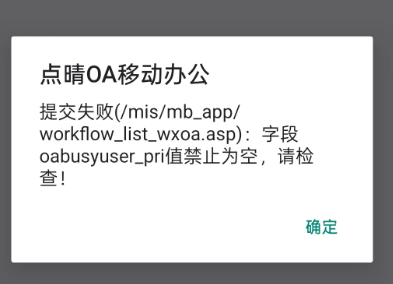 [點(diǎn)晴永久免費(fèi)OA]手機(jī)APP打開工作流審批提示字段值禁止為空,無法提交