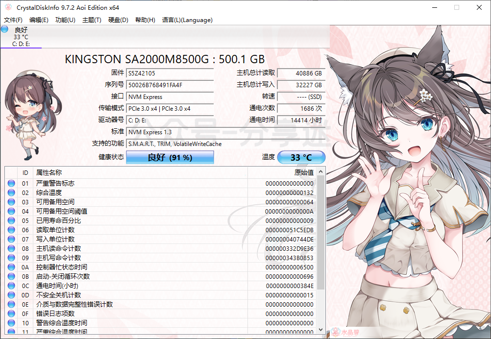 ![]() 這是一位日本開發(fā)者開發(fā)的專業(yè)硬盤健康狀態(tài)信息檢測(cè)工具,專為檢查 HDD 機(jī)械硬盤和 SSD 固態(tài)硬盤的狀態(tài)而設(shè)計(jì)。 本次分享迷提供兩個(gè)版本:一個(gè)是標(biāo)準(zhǔn)版,另一個(gè)是 Aoi 版。兩者都是單文件版本,無需安裝,下載后直接運(yùn)行即可使用! 官網(wǎng)地址:https://crystaldiskinfo.org/ 下載地址:https://pan.xunlei.com/s/VOXzSvzfrI0BDzs2JVKDuzmpA1?pwd=pp4k https://crystalmark.info/en/download/? 標(biāo)準(zhǔn)版 ![]() Aoi版 ![]() CrystalDiskInfo可以全面、詳細(xì)、直觀地了解硬盤健康狀態(tài)和各種參數(shù),包含硬盤溫度、序列號(hào)、驅(qū)動(dòng)器接口、通電時(shí)間、通電次數(shù)等。比如可通過通電次數(shù)及通電時(shí)間辨認(rèn)是否為舊盤或海鮮貨。 軟件還會(huì)根據(jù)S.M.A.R.T的評(píng)分做出評(píng)估,當(dāng)硬盤快要損壞時(shí)還會(huì)發(fā)出警報(bào)。 除此之外,還能實(shí)時(shí)監(jiān)控硬盤溫度,防止過熱導(dǎo)致硬件損壞和數(shù)據(jù)丟失。 在硬盤類型的支持上面,無論是傳統(tǒng)的 IDE(并行 ATA)、串行 ATA 硬盤,還是新型的 NVMe 硬盤,CrystalDiskInfo 都能很好地支持。部分 USB 連接的硬盤和 Intel RAID 配置也在其支持范圍內(nèi),兼容性強(qiáng),適用各類用戶的不同存儲(chǔ)設(shè)備。 可以說是非常好的驗(yàn)盤工具,非常推薦大家使用! 該文章在 2025/10/10 16:55:07 編輯過 |