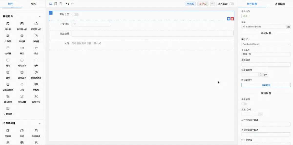 您可以根據(jù)業(yè)務(wù)需求隨心定制設(shè)計(jì)器界面和功能組合啦,系統(tǒng)會(huì)自動(dòng)生成對(duì)應(yīng)的配置參數(shù),簡直不要太方便!