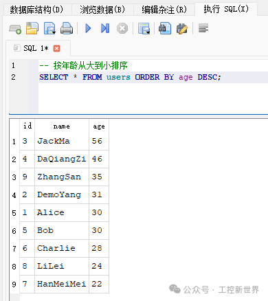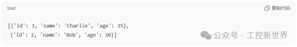 排序:按 age DESC → Charlie(35)、Bob(30)