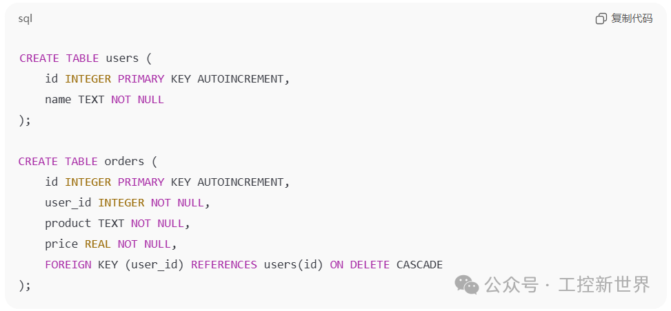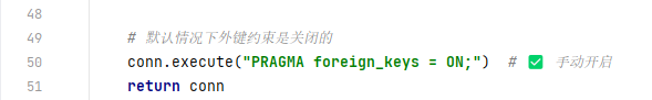 ?? 注意:SQLite 默認 外鍵是關(guān)閉的,要顯式打開: