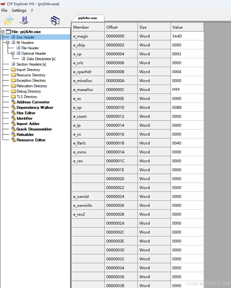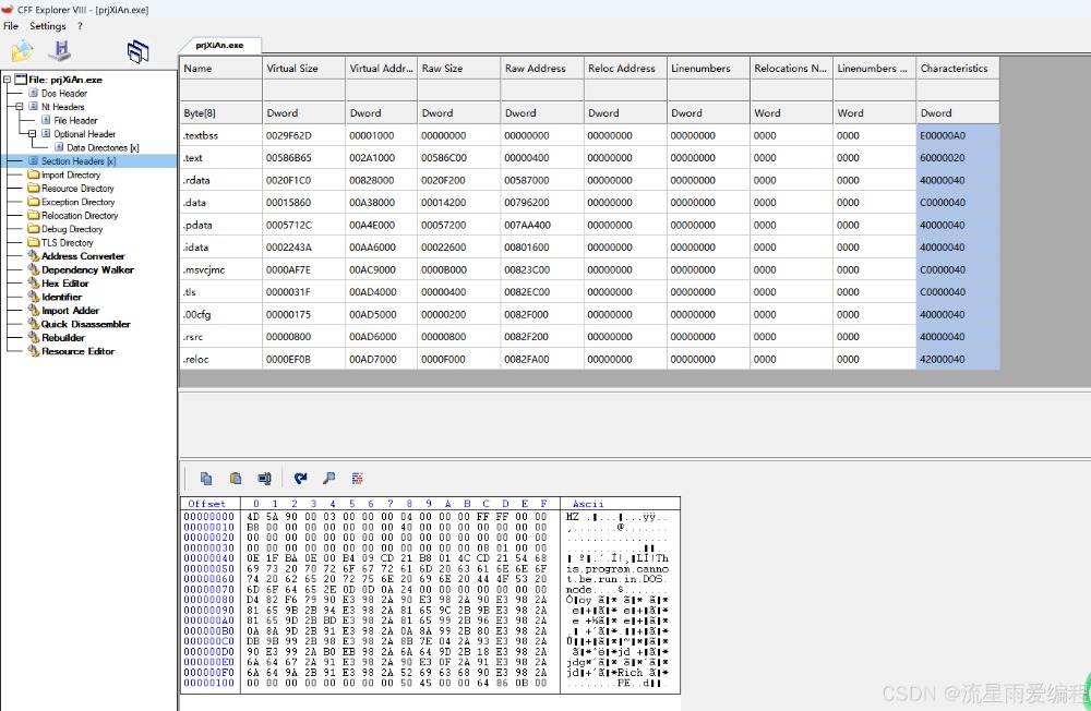 3.詳細使用指南啟動 CFF Explorer 后,主界面左側(cè)是一個樹形導航欄,右側(cè)是詳細的十六進制和結(jié)構(gòu)視圖。