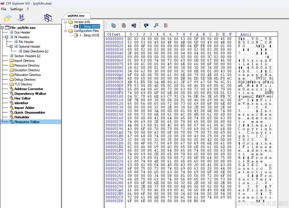 1.功能介紹CFF Explorer 是一款專為 Windows PE 文件(如 EXE、DLL、SYS)設計的多功能工具,核心功能包括深度結(jié)構(gòu)分析、可視化編輯和逆向工程輔助。它由 Daniel Pistelli 開發(fā),支持 PE32/PE64 格式,提供圖形化界面和腳本擴展,廣泛應用于軟件調(diào)試、惡意代碼分析、資源修改等場景。 1.PE 文件深度解析結(jié)構(gòu)可視化:直觀展示 PE 文件的 DOS 頭、NT 頭、節(jié)表、導入表、導出表、資源節(jié)等核心組件,支持字段級編輯。 高級分析: