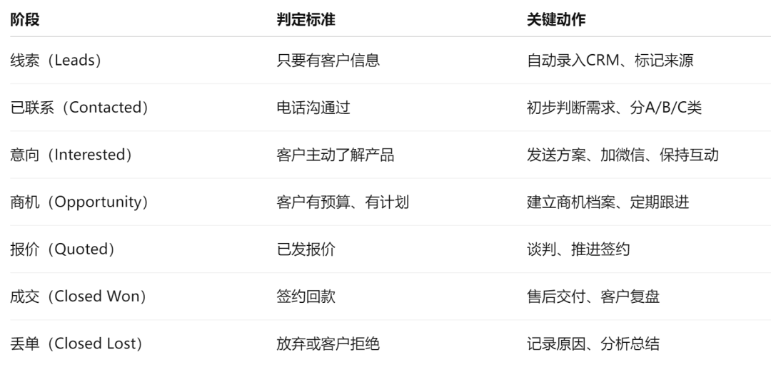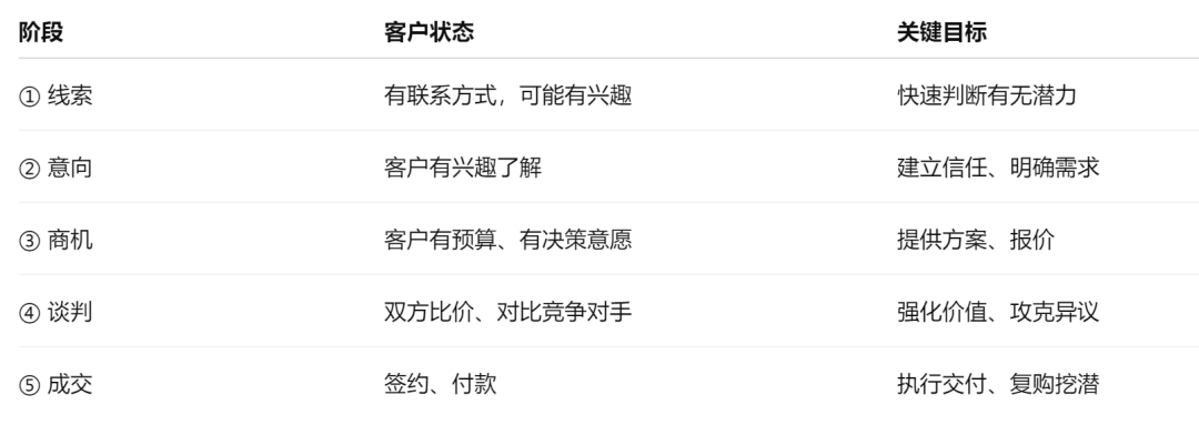每個階段都對應不同的動作和策略。如果你不分階段,只知道“客戶很多”,那根本不知道該怎么推進。