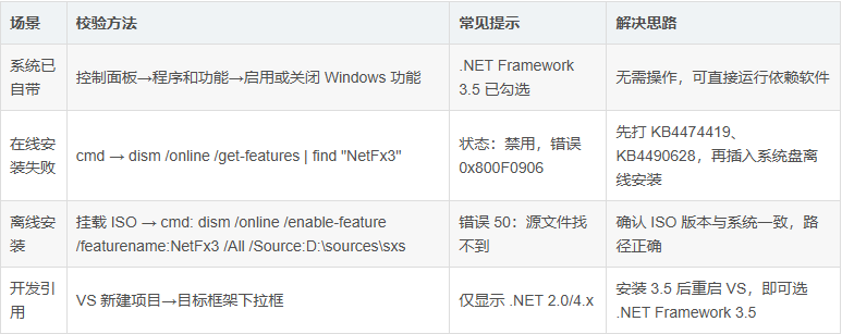 .Net Framework 3.5 的典型場景:醫(yī)院 HIS、銀行柜員、工廠上位機(jī)、學(xué)校考試客戶端、古董級 ERP、財(cái)務(wù)開票軟件,全是 .NET 3.5 高峰期的產(chǎn)物,源碼丟不了,換框架成本高,只能繼續(xù)抱著跑。 和 .Net Framework 3.5 同領(lǐng)域的主流軟件有 Java 和 .NET 6/8,Java 跨平臺(tái)強(qiáng),但桌面 GUI 丑到哭;新版 .NET 性能炸裂,可老程序遷移要改代碼。相比之下,3.5 的優(yōu)勢只有一條:老代碼零改動(dòng)直接跑,老板省錢,員工省心,缺點(diǎn)是只限 Windows。 下載.NET Framework 3.5安裝.NET Framework 3.5