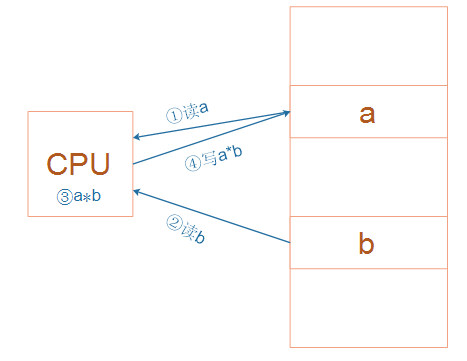 (3)舉一個例子,下圖是實現(xiàn)這樣的乘法運(yùn)算:a = a * b。它需要4個步驟:讀出a的值、讀出b的值、相乘、寫結(jié)果到a。