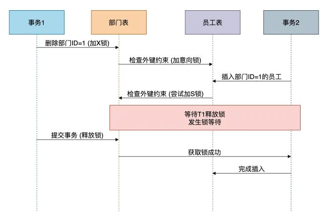 INSERT INTO employee (name, department_id) VALUES ('新員工', 1); -- 等待鎖