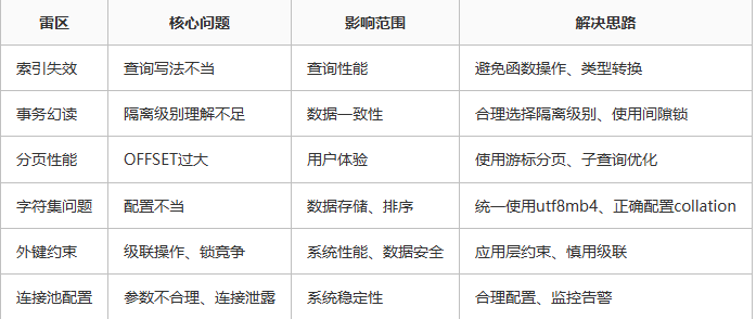 經(jīng)過以上6大雷區(qū)的分析,相信你對MySQL的常見坑點(diǎn)有了更深入的理解。