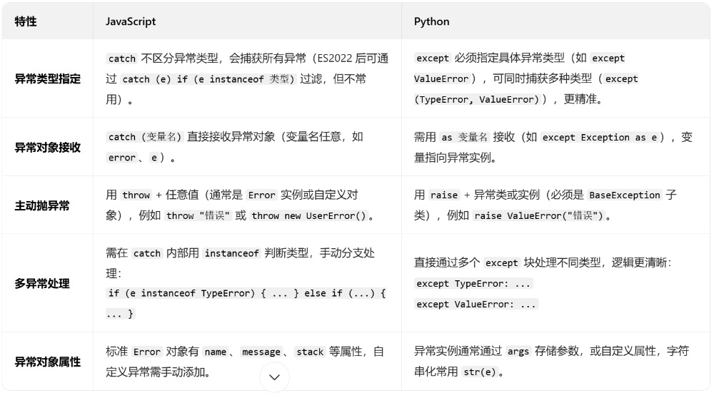 代碼; //如:console.log(`異常類型:${e.name},異常原因:${e.message}`);