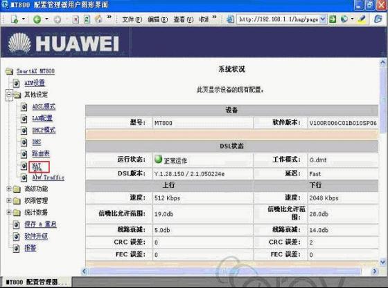 登陸到路由器的管理界面,選擇菜單中的“高級設置-》地址轉換”選項,進入端口映射設置界面。