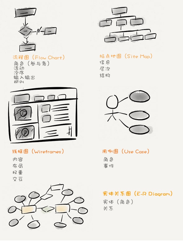 前言:近來一段時(shí)間,忙于整理業(yè)務(wù)流程圖,期間,關(guān)于流程圖的繪制方法和工具也與內(nèi)部團(tuán)隊(duì)和外部做了心得交流,恰好,個(gè)人生活也牽涉在買房,婚禮,戶口遷移等流程中。不知不覺,伴隨著實(shí)踐與反思,個(gè)人所得的系統(tǒng)知識(shí)趨于完整,今兒天氣極好,坐在飄窗一隅,聽著間或幾聲鳥鳴歌唱,偶爾瞥一眼窗外的遍地綠蔭,真真覺得是個(gè)寫點(diǎn)什么的日子。所以就整理成文,如果恰好對(duì)你有所幫助,那是真真好的。 真實(shí)整理的流程牽涉到公司未公布的計(jì)劃,不好公開,所以在本文中會(huì)借助一個(gè)簡單的案例替代(這個(gè)案例呢,也就是計(jì)劃寫本文前30分分鐘才想到的,如有考慮不周,請(qǐng)各位見諒),但是僅傳達(dá)概念和方法,倒也足夠了。恩,甄環(huán)體告一段落,咱們開始吧。 ![]() 圖1:用即時(shí)貼與白板做的簡單流程圖 本文會(huì)包含幾塊內(nèi)容: 1. 什么是流程圖?流程圖和其他圖表(如線框圖,概念圖,架構(gòu)圖,用例圖)有什么不同? 2. 為什么需要流程圖? 3. 流程圖的分類? 4. 如何繪制流程圖? 5. 流程圖繪制工具 視篇幅情況,會(huì)在行文時(shí)略加劃分為系列,敬請(qǐng)關(guān)注并多多交流。 第一部分:什么是流程圖? 1. 定義 了解一個(gè)事情,我習(xí)慣從它的定義開始。至于為什么,可以參見我之前的博客文章:http://heidixie.blog.sohu.com/161709085.html 我們因?yàn)閰拹菏杲逃?,厭惡背各種定理和定義,所以我發(fā)現(xiàn)生活中和工作中很多人都很討厭給一個(gè)事情下定義以及去參考定義。所以你會(huì)發(fā)現(xiàn)很多人在一起爭吵得不可開交,仔細(xì)去聽,原來是雞同鴨講,根本不在一個(gè)頻道上。對(duì)于一個(gè)事情的描述,沒有一個(gè)共同的語言,沒有所謂的術(shù)語。有定義很好辦,你們共同引用一個(gè)定義,發(fā)現(xiàn)定義有問題,OK,去補(bǔ)充這個(gè)定義,并擴(kuò)展到更多的人群。當(dāng)然,任何事情過猶不及,我們相互提醒吧。 那什么是流程圖呢?說文解字是一種了解定義的好方法。流程圖=流程+圖,如下圖: ![]() 圖2:流程圖的定義 流程:Flow,是指特定主體為了滿足特定需求而進(jìn)行的有特定邏輯關(guān)系的一系列操作過程,流程是自然而然就存在的。但是它可以不規(guī)范,可以不固定,可以充滿問題。所以就會(huì)造成看似沒有流程。前不久,團(tuán)隊(duì)每個(gè)人對(duì)接一個(gè)業(yè)務(wù)團(tuán)隊(duì)去調(diào)研流程,反饋給我的流程有一些缺失。詢問時(shí),負(fù)責(zé)人反饋給我的答復(fù)是:這一塊業(yè)務(wù)他們沒有流程。其實(shí)嚴(yán)格意義上講,業(yè)務(wù)已經(jīng)開展,不可能沒有流程,只是說沒有固定的流程或者你調(diào)研的對(duì)象也講不清楚。 圖:Chart 或者 Diagram, 是將基本固化有一定規(guī)律的流程進(jìn)行顯性化和書面化,從而有利于傳播與沉淀、流程重組參考。 從定義可以看出,只要有事情和任務(wù),流程就會(huì)有,但是并不是所有的流程都適合用流程圖的方式去表現(xiàn),適合用流程圖去表現(xiàn)的流程是一定程度固定的有規(guī)律可循的,流程中的關(guān)鍵環(huán)節(jié)不會(huì)朝令夕改的。 2. 流程圖與其他圖表的對(duì)比 工作中我們還用到或聽到很多其他類型的圖表,比如交互設(shè)計(jì)師們經(jīng)常說的線框圖(Wireframes),信息架構(gòu)圖或站點(diǎn)地圖(Site Map),,開發(fā)工程師們經(jīng)常說的用例圖(Use Case)或E-R圖。這些不同的圖表要表達(dá)的內(nèi)容有何種差異呢?簡單做個(gè)對(duì)比,如圖: ![]() 圖3:流程圖VS其他常用圖表 如果要串到某一個(gè)項(xiàng)目來說,可以理解成: 用例圖(Use Case):