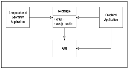 違反SRP原則的類層次結(jié)構(gòu) 這里,Rectangle 類干了下面兩件事: