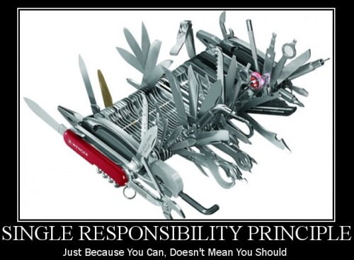 妻子:然后呢? 丈夫:不只我們。很多人也花了很多時(shí)間和精力思考這個(gè)問題上,他們嘗試更好的進(jìn)行“面向?qū)ο笤O(shè)計(jì)”,并為“面向?qū)ο笤O(shè)計(jì)”指出幾條基本的原則(你可以用在你的“面向?qū)ο笤O(shè)計(jì)”中)。他們也確實(shí)總結(jié)出了一些通用的設(shè)計(jì)模式(基于基本的原則)。 妻子:你能說出一些嗎? 丈夫:沒問題?,F(xiàn)在有許多設(shè)計(jì)原則,但是最基本的,就是SOLID(縮寫),這五項(xiàng)原則。(感謝鮑勃叔叔,偉大OOD導(dǎo)師)。 S = 單一責(zé)任原則 在下面的討論中,我們將詳細(xì)了解這些。 話題:?jiǎn)我还δ茉瓌t作者:讓我們先來看圖,我們應(yīng)該感謝制作這張圖的人,因?yàn)樗鼈冋娴奶腥ち恕?
