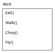 違反接口隔離原則的接口示例 注意,IBird接口定義 Fly()的行為有許多鳥類的行為?,F(xiàn)在,如果一只鳥類(比方說,鴕鳥)實(shí)現(xiàn)了這個(gè)接口,它將會(huì)實(shí)現(xiàn)不必要的 Fly()的行為(鴕鳥不會(huì)飛)。 妻子:是啊。因此,這個(gè)接口必須被分割? 作者:是的,“胖接口”應(yīng)該分隔成兩個(gè)不同的接口,IBird 和IFlyingBird,而IFlyingBird繼承于IBird。