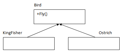 類層次結(jié)構(gòu)圖展示的是一個(gè)Liskov替換原則的例子.因?yàn)?KingFisher類拓展(繼承)了Bird類,因此繼承了Fly()這個(gè)方法,這是非常不錯(cuò)的. 我們?cè)賮砜纯聪旅娴睦?