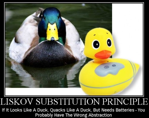 類的層次關(guān)系展示了"開放-關(guān)閉"原則 在這個(gè)例子中, 添加了一個(gè)抽象的Server類, 并且客戶端保持了抽象類的引用, 具體的Server類實(shí)現(xiàn)了這個(gè)抽象Server類. 所以, 由于某種原因Server的實(shí)現(xiàn)類發(fā)生了改變, 客戶端不需要做任何改變. 這里的抽象的Server類對(duì)修改關(guān)閉, 具體的Server實(shí)現(xiàn)類對(duì)擴(kuò)展開放. 妻子: 我的理解是, 抽象是關(guān)鍵, 對(duì)嗎? 丈夫: 是的, 基本上, 你要對(duì)系統(tǒng)的核心業(yè)務(wù)進(jìn)行抽象, 如果你抽象化做的比較好, 很可能, 在擴(kuò)展功能的時(shí)候它們不必做任何改變 (比如Server就是一個(gè)抽象的概念). 你所定義的抽象的實(shí)現(xiàn) (比如, IIS服務(wù)器 實(shí)現(xiàn)了 Server) 和 抽象的代碼 (Server) 要盡可能的多. 這樣在客戶端代碼中不需要做任何修改就會(huì)允許你定義一個(gè)新的實(shí)現(xiàn)(比如, ApacheServer) . 主題: 里氏替換原則丈夫: "里氏替換原則"聽起來非常的復(fù)雜,但是設(shè)計(jì)思想?yún)s是非?;A(chǔ)的. 看下面這個(gè)有趣的海報(bào)