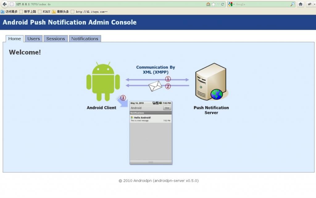 在 開發(fā)Android和iPhone應用程序時,我們往往需要從服務器不定的向手機客戶端即時推送各種通知消息,iPhone上已經(jīng)有了比較簡單的和完美的 推送通知解決方案,可在Android平臺上實現(xiàn)起來卻相對比較麻煩,最近就對Android的推送通知服務進行初步的研究。 在Android手機平臺上,Google提供了C2DM(Cloudto Device Messaging)服務,起初我就是準備采用這個服務來實現(xiàn)Android手機上的推送功能。 Android Cloud to Device Messaging (C2DM)是一個用來幫助開發(fā)者從服務器向Android應用程序發(fā)送數(shù)據(jù)的服務。該服務提供了一個簡單的、輕量級的機制,允許服務器可以通知移動應用 程序直接與服務器進行通信,以便于從服務器獲取應用程序更新和用戶數(shù)據(jù)。C2DM服務負責處理諸如消息排隊等事務并向運行于目標設備上的應用程序分發(fā)這些 消息。 但這個服務存在很大的問題: 1、C2DM內(nèi)置于Android的2.2系統(tǒng)上,無法兼容老的1.5到2.1系統(tǒng); 2、C2DM需要依賴于Google官方提供的C2DM服務器,由于國內(nèi)的網(wǎng)絡環(huán)境,這個服務經(jīng)常不可用,如果想要很好的使用,我們的App Server必須也在國外。這個可能不是每個開發(fā)者或公司能實現(xiàn)的。 所以最終我放棄了這個方案。采用XMPP協(xié)議實現(xiàn)Android推送,事實上Google官方的C2DM服務器底層也是采用XMPP協(xié)議進行的封裝。XMPP(可擴展通訊和表示協(xié)議)是基于可擴展標記語言(XML)的協(xié)議,它用于即時消息(IM)以及在線探測。這個協(xié)議可能最終允許因特網(wǎng)用戶向因特網(wǎng)上的其他任何人發(fā)送即時消息。 androidpn是一個基于XMPP協(xié)議的java開源Android push notification實現(xiàn)。它包含了完整的客戶端和服務器端。