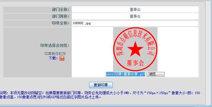 印章在哪里管理維護?怎么提交了新印章后顯示的還是原來的印章(更新失敗)?