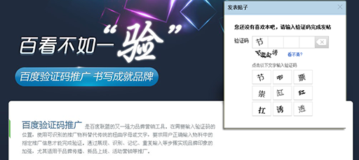 目前在移動(dòng)設(shè)備中輸入驗(yàn)證碼的情況并不多見(jiàn),但隨著網(wǎng)絡(luò)安全意識(shí)的加強(qiáng)和移動(dòng)互聯(lián)網(wǎng)的發(fā)展,驗(yàn)證碼在移動(dòng)端的出現(xiàn)不可避免,這時(shí)驗(yàn)證碼辨認(rèn)難度高和輸入準(zhǔn)確率低的缺點(diǎn)會(huì)直接暴露在用戶面前,那么我們到底能否用一種更簡(jiǎn)單高效的方式來(lái)替代傳統(tǒng)的驗(yàn)證碼呢?答案是有的。 點(diǎn)擊而非輸入在注冊(cè)論壇輸入驗(yàn)證碼時(shí)我們必須先從視覺(jué)上分辨出驗(yàn)證碼框中顯示的文字,然后通過(guò)鍵盤(pán)輸入到提交框中。如果我們輸入的驗(yàn)證碼是有誤的,我們就很有可能面臨重新輸入密碼并確認(rèn)密碼,然后繼續(xù)辨認(rèn)驗(yàn)證碼的痛苦過(guò)程,這絕不是好的用戶體驗(yàn)。而近日百度貼吧中去掉了驗(yàn)證碼輸入框,取而代之的是選擇框,這是個(gè)令人驚嘆的設(shè)計(jì)!