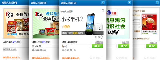 這種驗(yàn)證碼通常都比較直觀和簡(jiǎn)單,沒(méi)有太多辨識(shí)方面的困難。其主要特點(diǎn)是驗(yàn)證碼是一個(gè)循環(huán)的 Gif動(dòng)畫(huà),顯示靜態(tài)驗(yàn)證碼的時(shí)間只有一到兩秒,這種動(dòng)畫(huà)驗(yàn)證碼可以有效的防止機(jī)器識(shí)別出驗(yàn)證碼內(nèi)容,也加強(qiáng)了安全性。 2.廣告驗(yàn)證碼