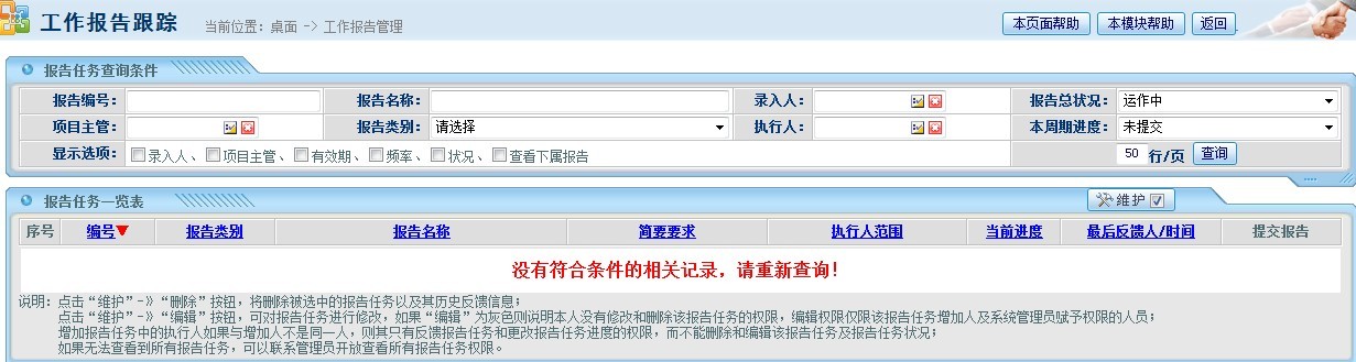 如果領導安排的工作報告,要求你的崗位按時報告,這里會查詢到任務
