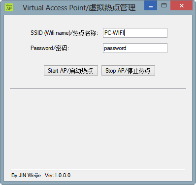 360要推便攜路由器今天引發(fā)了不少關(guān)注,其實(shí)Windows 7以上的系統(tǒng)是非常容易建立無線熱點(diǎn)的,為了更容易地實(shí)現(xiàn)將PC作為無線熱點(diǎn)的功能,寫了個小工具。實(shí)現(xiàn)其實(shí)很簡單: 源代碼已經(jīng)共享在Github上:https://github.com/jinweijie/VirtualAP
