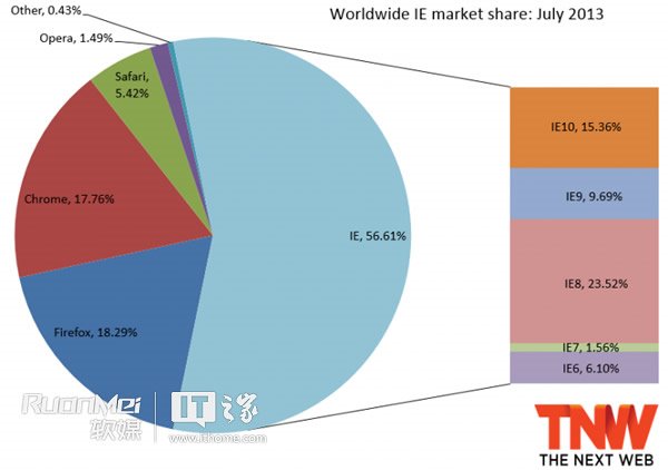 7月的瀏覽器:IE依然獨(dú)大,F(xiàn)irefox哭Chrome笑