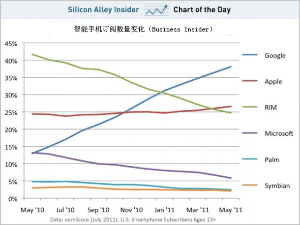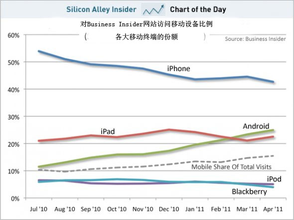 2011年5月三日——從另外一個(gè)角度來(lái)說(shuō),《商業(yè)內(nèi)幕》的讀者喜歡他們的iPhone,但是安卓發(fā)展迅速。